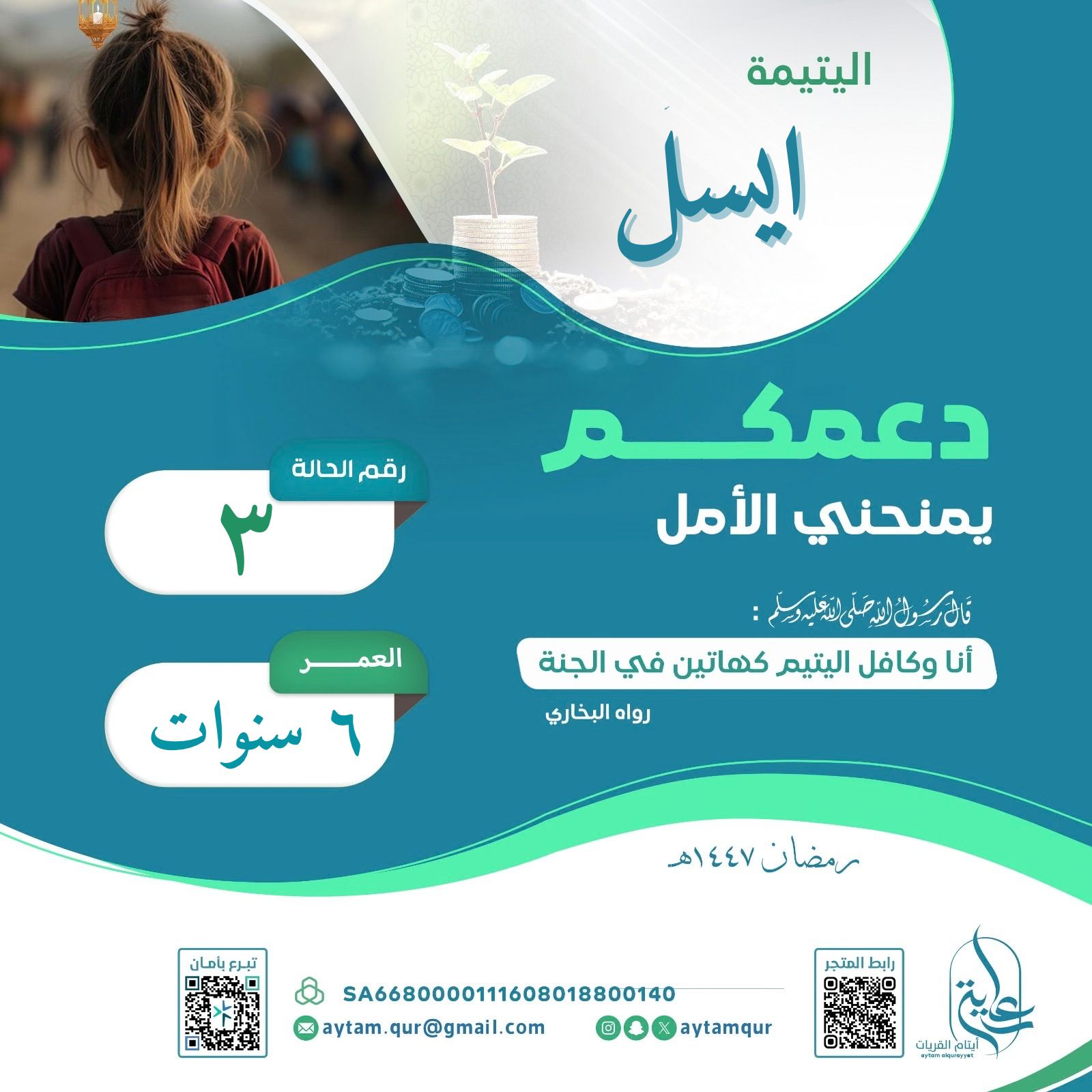تخيل أن يديك قادرة على تغيير حياة اليتيـــــــمة ايسل ...