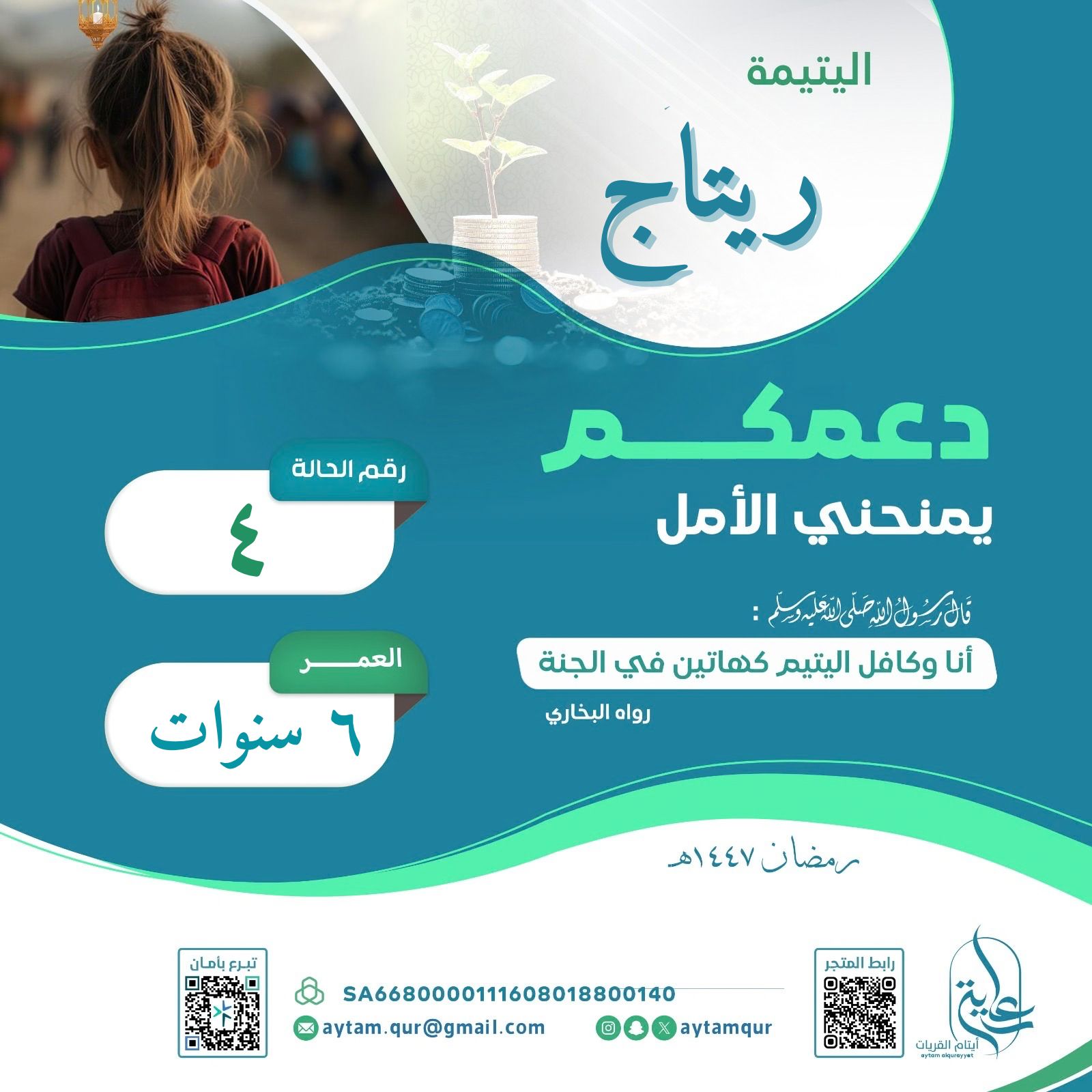 تخيل أن يديك قادرة على تغيير حياة اليتيـــــــمة ريتاج ...